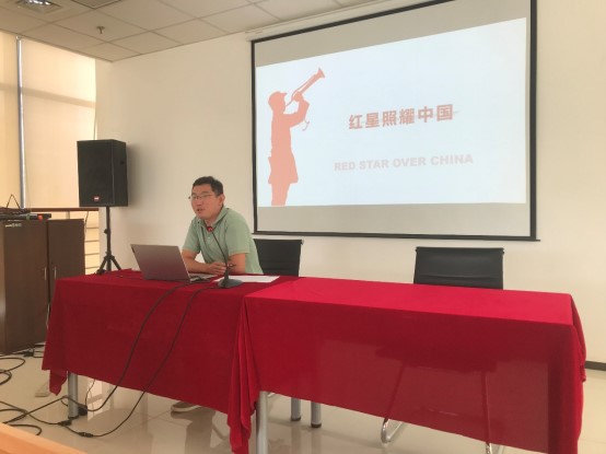 柏祥濤分享了美國作者埃德加·斯諾所著的《紅星照耀中國》一書?;顒?dòng)當(dāng)天正是毛主席逝世46周年紀(jì)念日,今天分享的這本書籍還原原著中的諸多細(xì)節(jié),有血有肉地塑造與再現(xiàn)了毛澤東、周恩來、彭德懷等革命領(lǐng)袖的寫實(shí)形象,客觀公正地了解這支成功建立共和國的革命隊(duì)伍,詩意詮釋“不忘初心”的真諦,給了在場很多同事啟發(fā)。